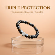 Triple Protection Stone – Tourmaline + Hematite + Tiger Eye - 8mm